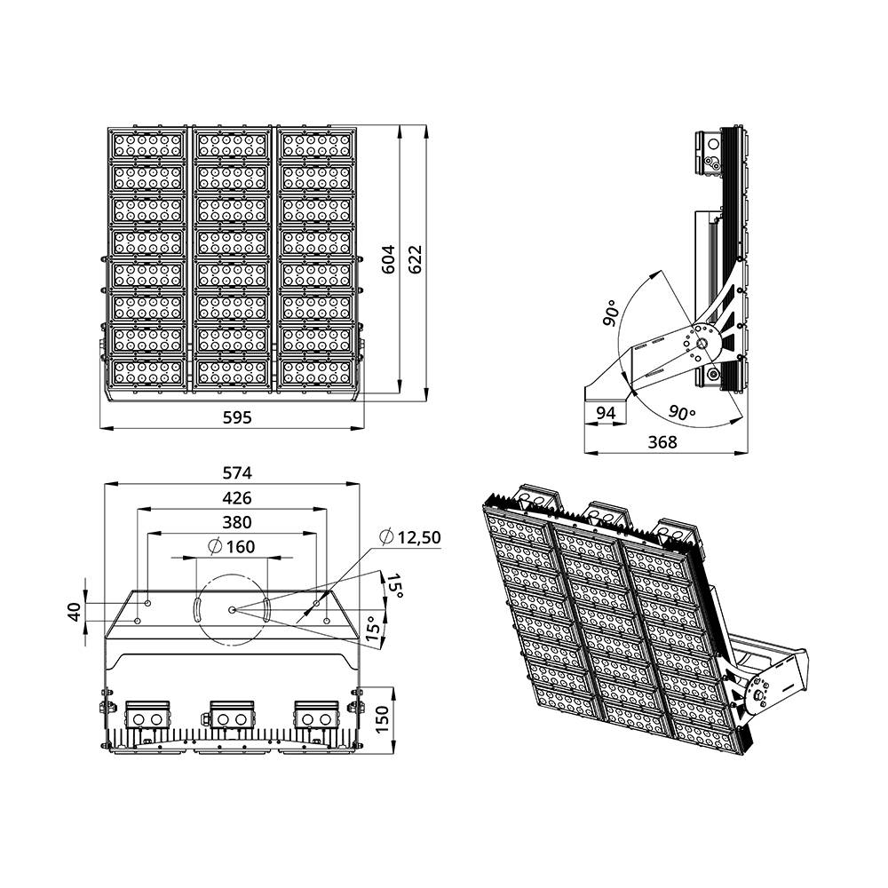 - Кривая силы света (КСС) Д — широкая кривая распределения света по ГОСТ, идеально подходит для равномерного освещения больших пространств