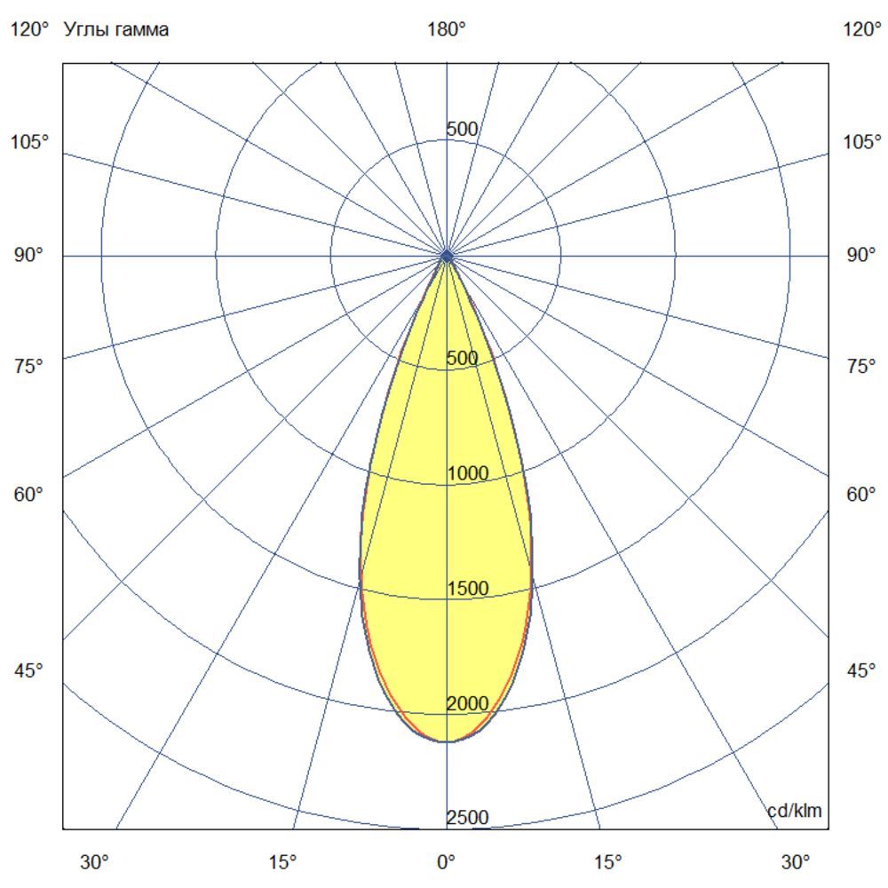 Кривая силы света (КСС): Широкая косинусная — обеспечивает равномерное распределение светового потока в пределах 40°, идеально подходит для общего освещения производственных помещений и складов с высотой подвеса до 10 метров.