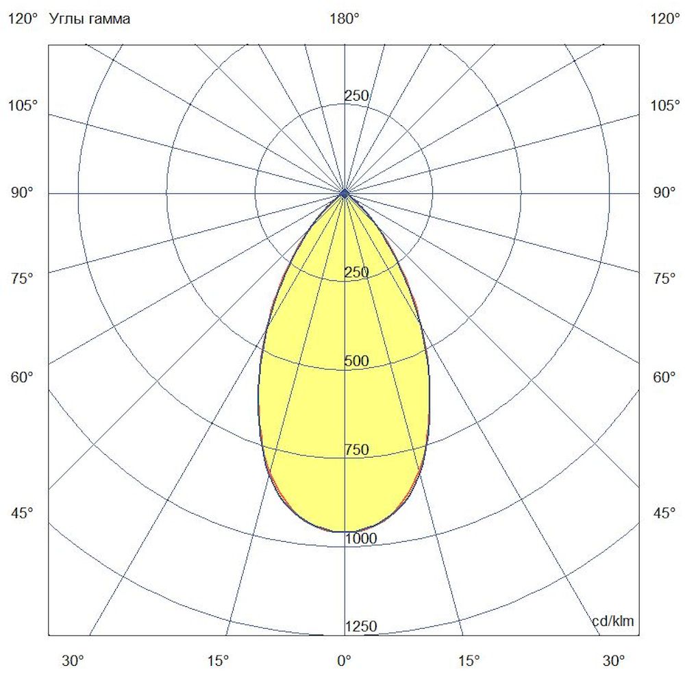 Кривая силы света (КСС): Нормально-осевая — распределение светового потока направлено вниз под углом 55°, что идеально подходит для освещения производственных цехов, складских помещений и торговых залов. Такая диаграмма направлена на максимальную эффективность освещения рабочих поверхностей.