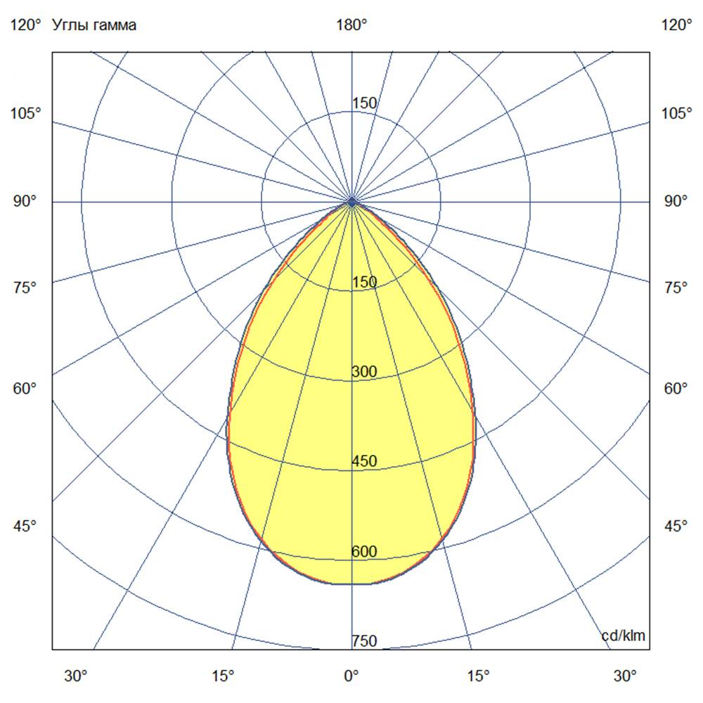 - Кривая силы света (КСС): Д (Д) – глубокая косинусная кривая, обеспечивающая максимальную эффективность при освещении территорий с высоты 6-12 метров