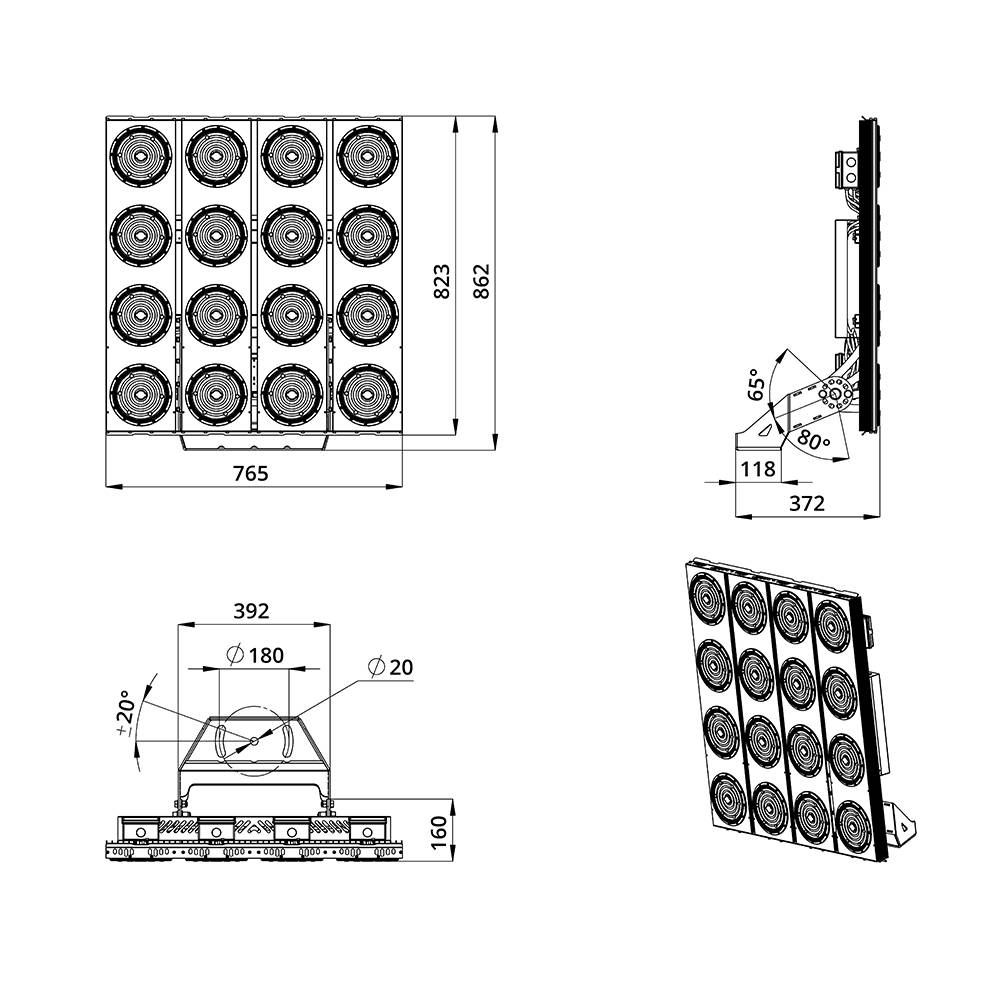 - Мощность: 160 Вт — обеспечивает яркое равномерное освещение больших площадей без мерцания и перепадов напряжения