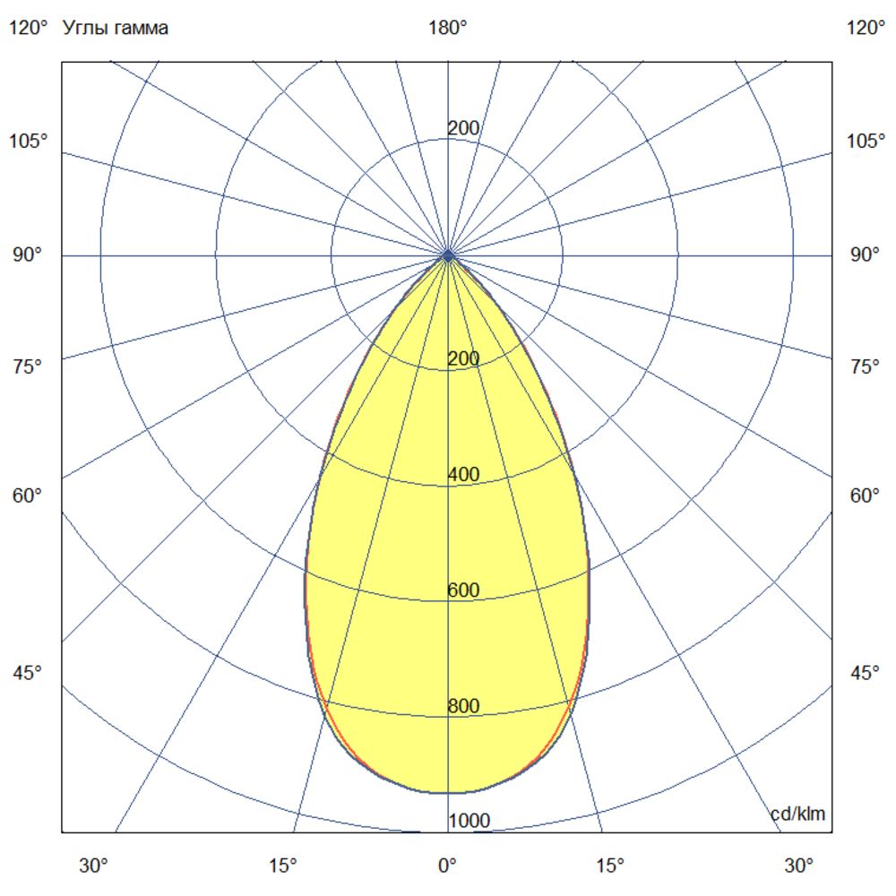 - Кривая силы света (КСС): Широкая косинусная – обеспечивает равномерное распределение светового потока вниз от светильника, идеально подходит для общего освещения производственных помещений.