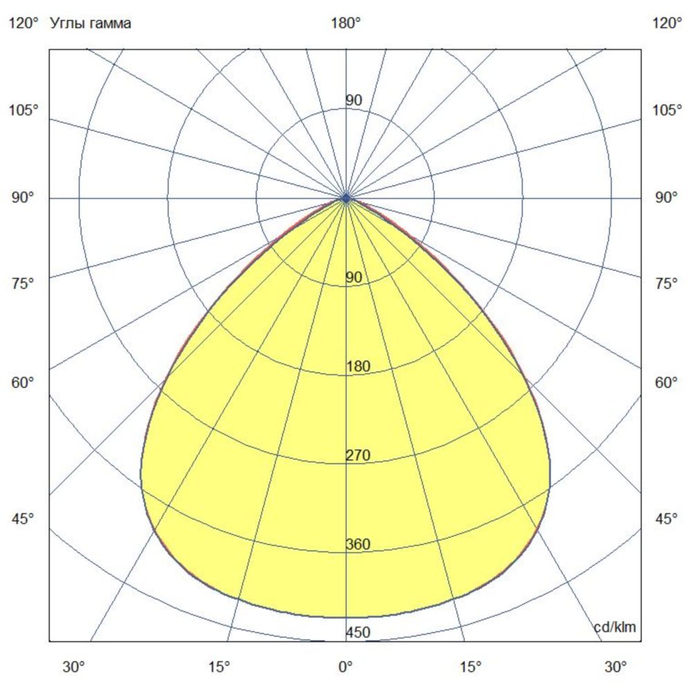 - Кривая силы света (КСС): «Глубокая» – распределение светового потока вниз под углом 90°, идеально подходит для освещения проезжей части и парковок