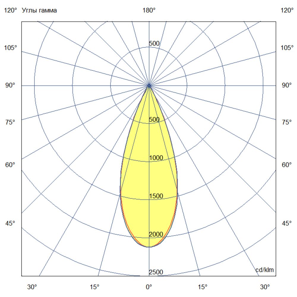 - Кривая силы света (КСС): Широкая — равномерное освещение больших площадей по российской классификации