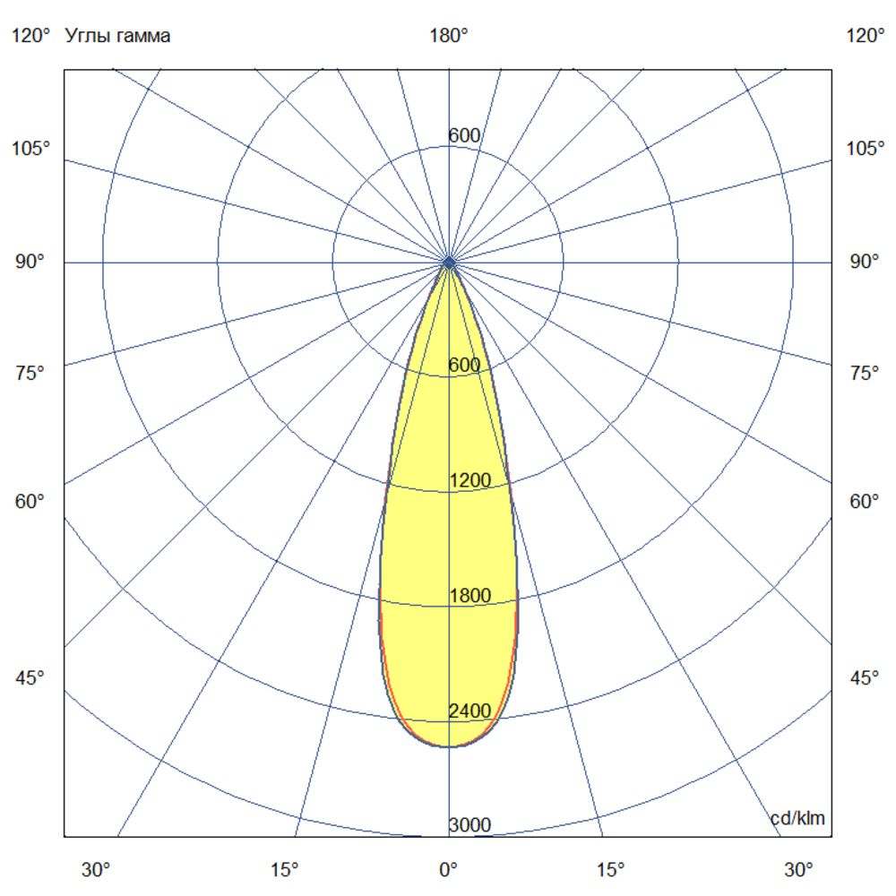 Кривая силы света (КСС): глубокая – согласно российской классификации предназначена для освещения пространств с высокими потолками (от 8 метров). Обеспечивает направленный световой поток, минимизируя потери света.