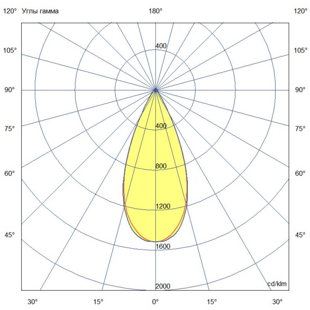 Кривая силы света (КСС) — специальная кривая, показывающая распределение светового потока в пространстве. У данной модели КСС типа «широкая» (по российской классификации), что обеспечивает равномерное освещение больших площадей. Особенно эффективен для помещений высотой 6-10 метров с необходимостью общего освещения.