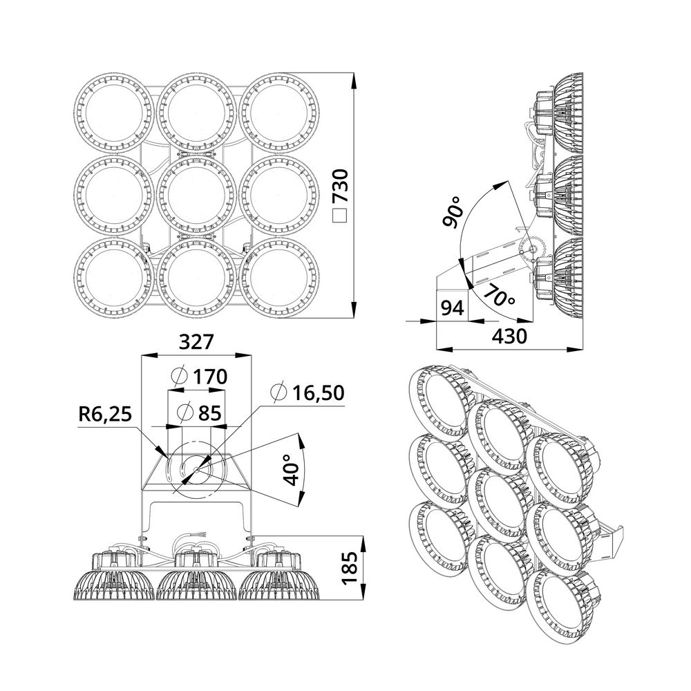 - Световой поток: 21600 Лм – гарантирует равномерное освещение без темных зон