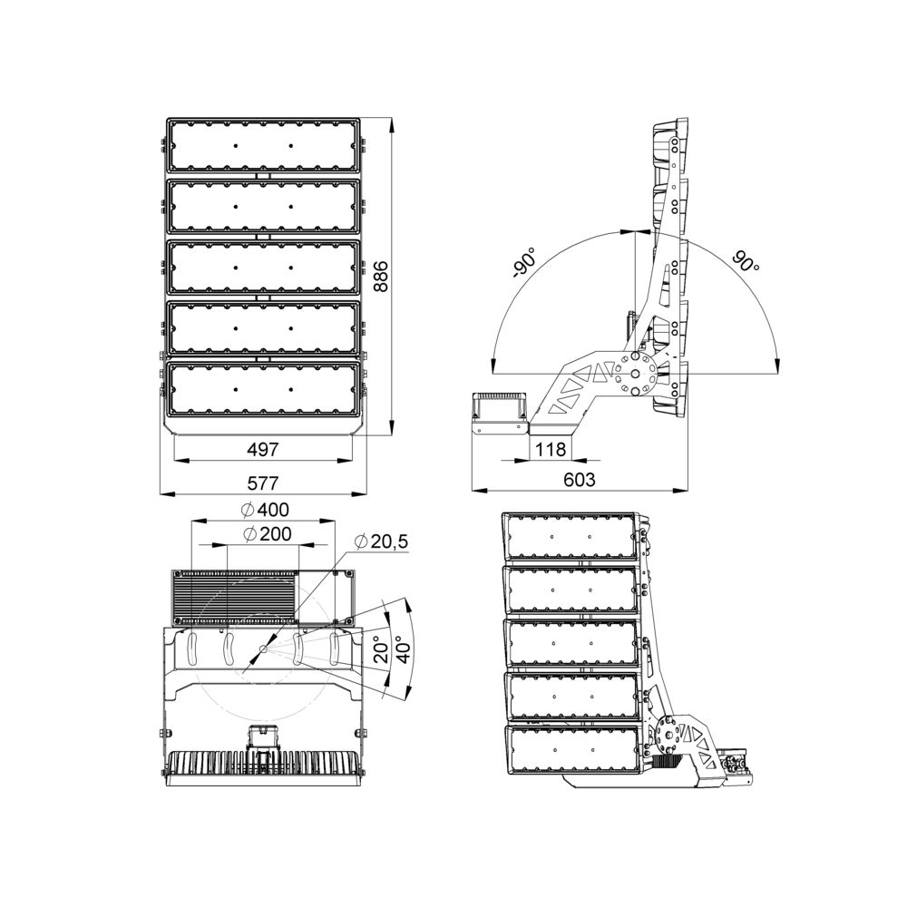 - Световой поток: 22500 Лм — обеспечивает яркое и равномерное освещение больших площадей
