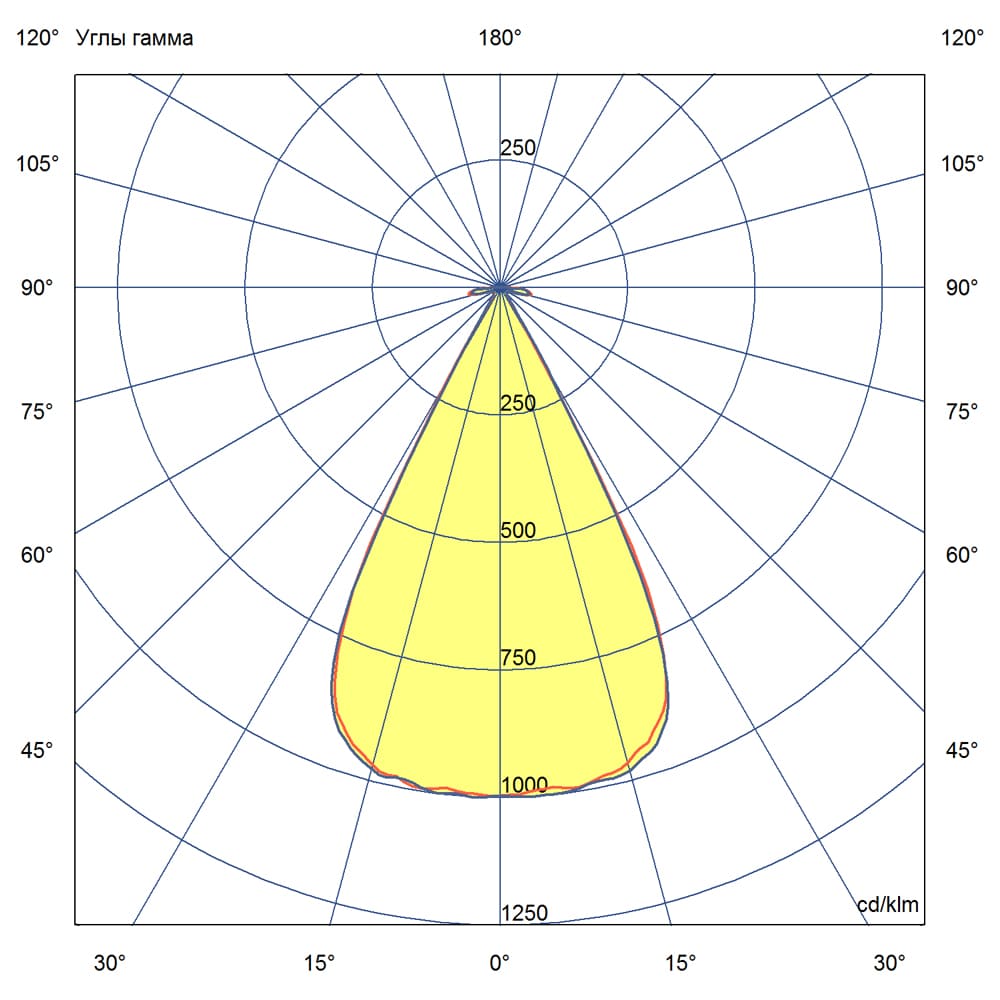 Кривая силы света (КСС): глубокая КСС — распределение светового потока в форме узкого конуса с углом 45°. Такая диаграмма направлена на точечное освещение рабочих зон с высоты подвеса 6-12 метров. Особенно эффективна для складских помещений с высокими стеллажами.