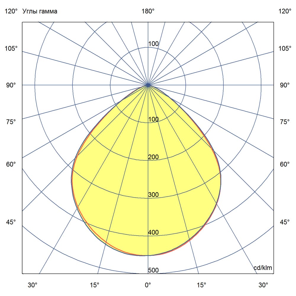 - Кривая силы света (КСС) — Широкая — соответствует российской классификации КСС, обеспечивает равномерное распределение света в больших помещениях