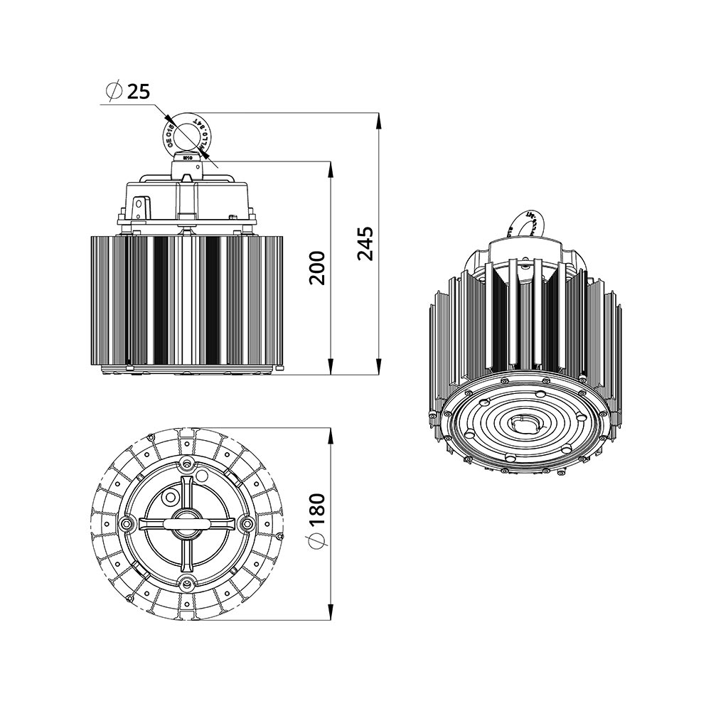 - Световой поток: 19500 Лм — яркость, достаточная для качественного освещения производственных помещений и складских комплексов