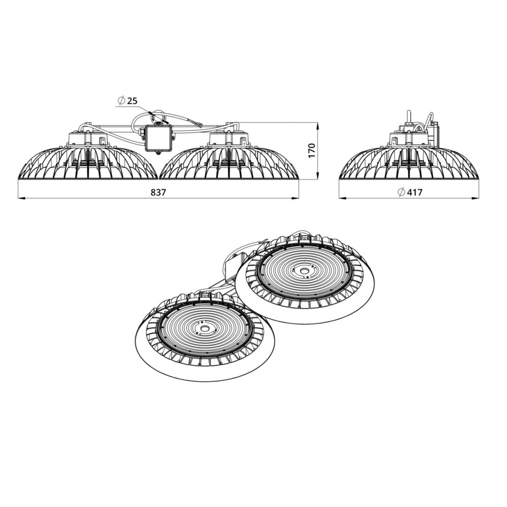 Кривая силы света (КСС): Широкая (90°). По российской классификации — КСС типа Г (глубокая). Идеально подходит для равномерного освещения высоких пространств.