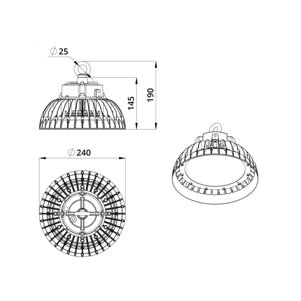 - Кривая силы света (КСС): Косинусная – равномерное распределение светового потока в пределах 120°, что особенно важно для освещения производственных цехов и складских помещений