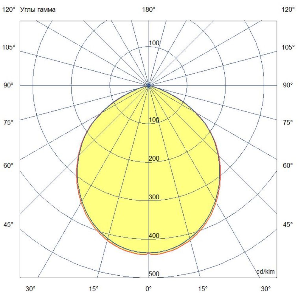 - Кривая силы света (КСС): Косинусная — равномерное распределение светового потока вниз