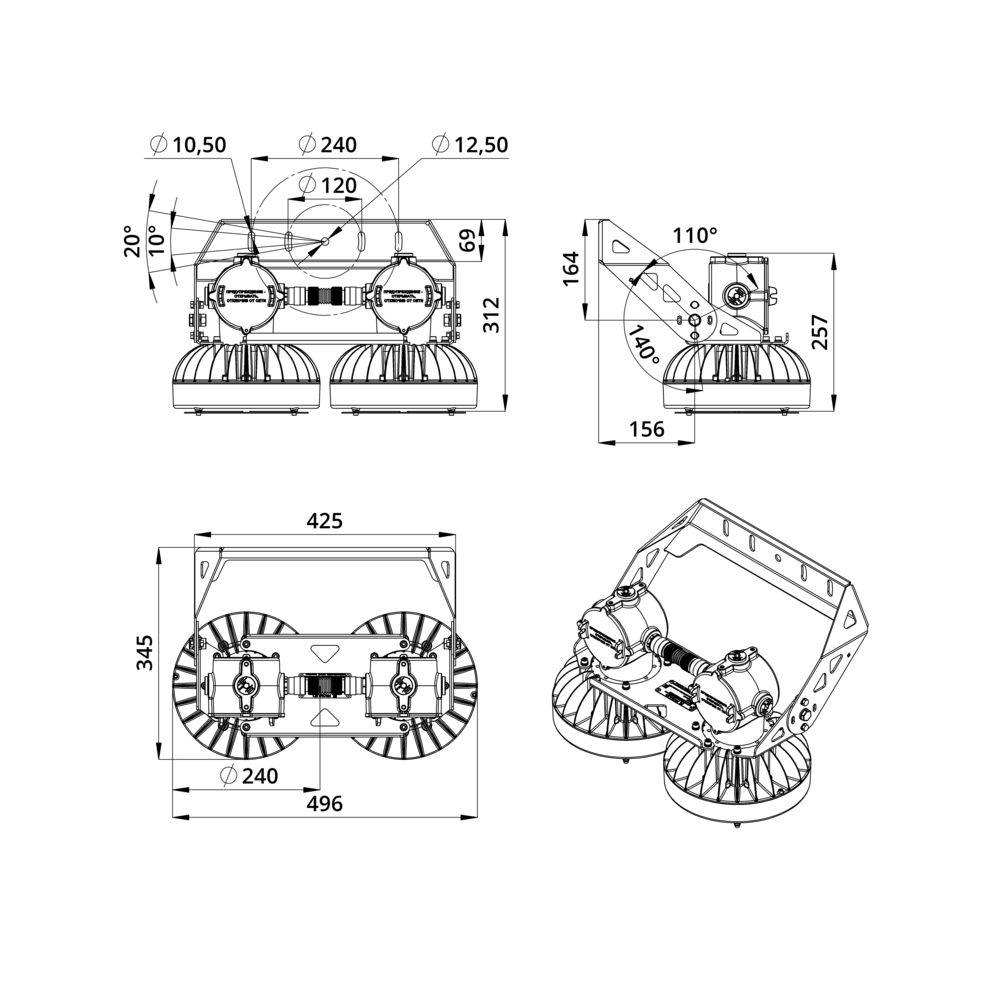 Светодиодный светильник Профи Нео M Ex — 2 — 200 — К — П120 — 4070 — M20