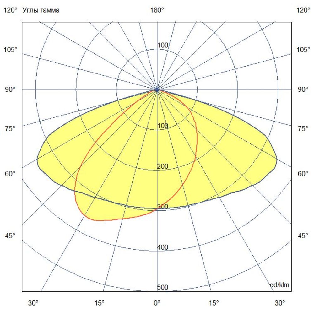Кривая силы света (КСС) – глубокая широкая. Эта характеристика важна для равномерного распределения светового потока на освещаемой поверхности. По российской классификации она относится к типу «Д», что идеально подходит для освещения промышленных цехов высотой 6-12 метров, складских помещений и открытых площадок.