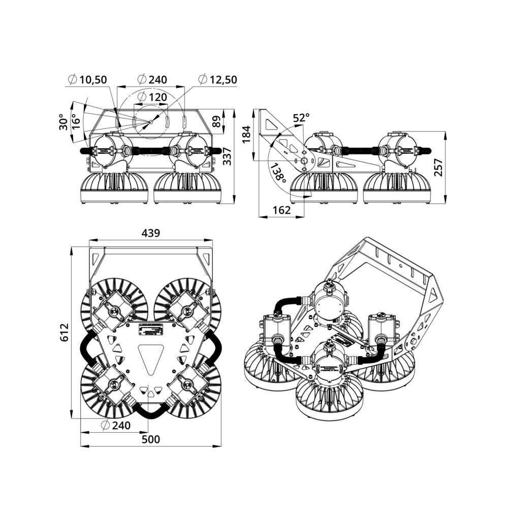 - Мощность: 240 Вт – обеспечивает яркое освещение больших площадей без переплат за избыточную мощность