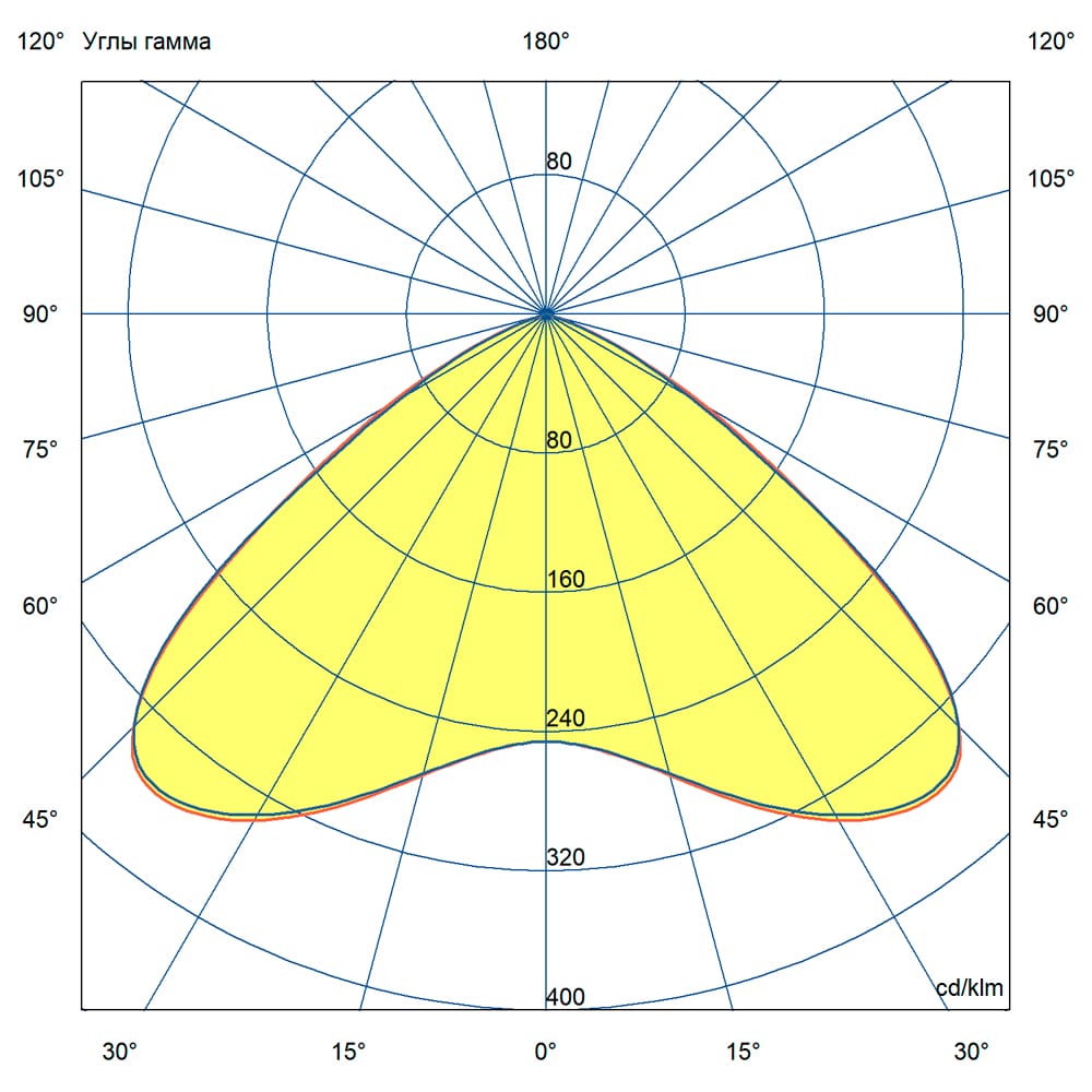 - Кривая силы света (КСС) – Д (двойная) – распределение светового потока в двух направлениях, что идеально подходит для освещения проездов, парковок и производственных цехов