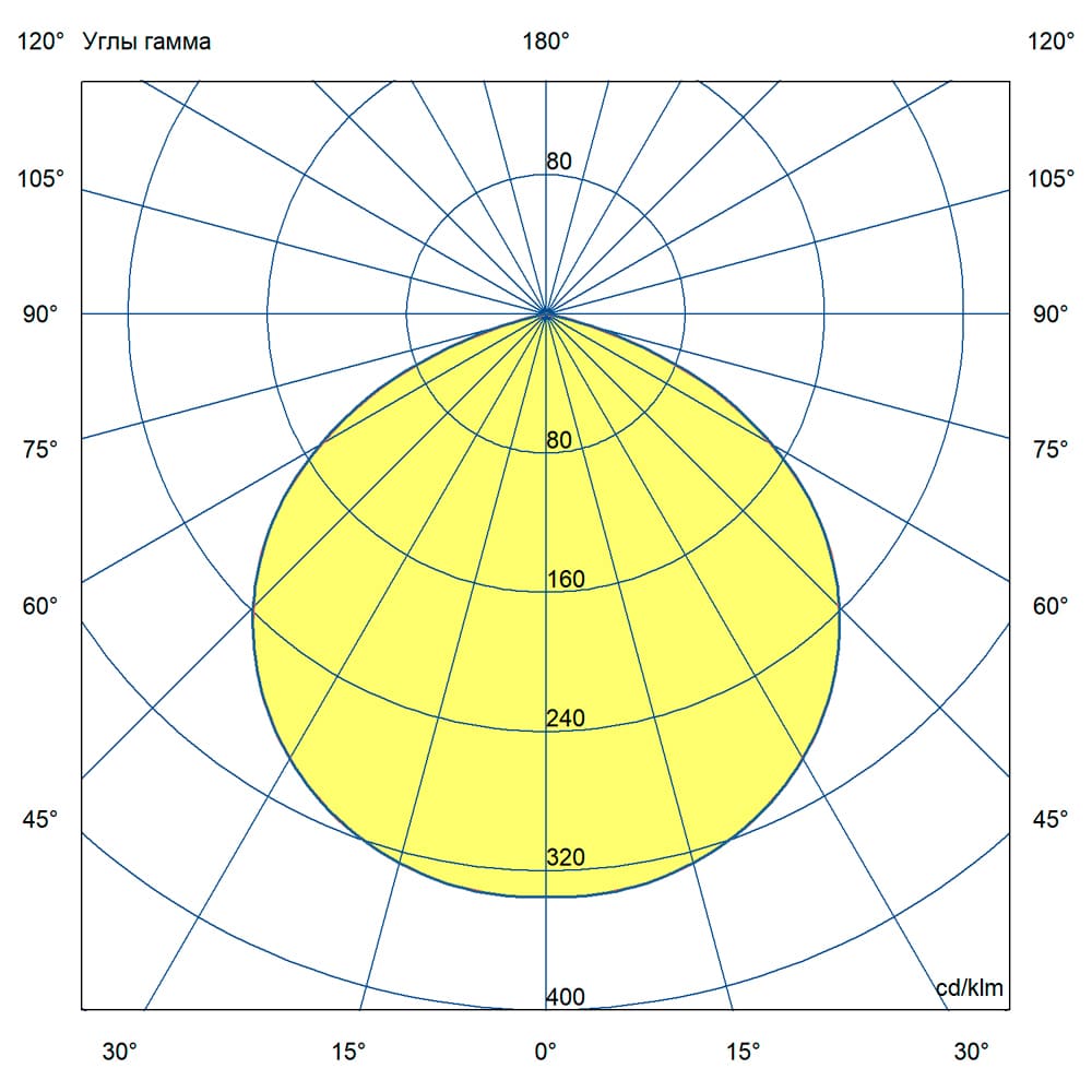 - Кривая силы света (КСС): Широкая — распределение светового потока в пределах угла 120°, что позволяет эффективно освещать большие площади с высоких точек крепления