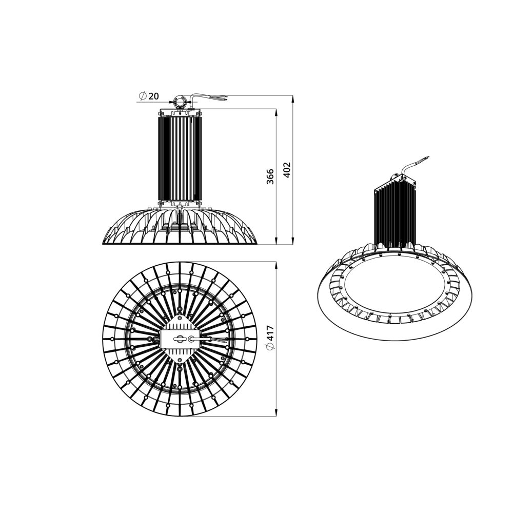 Кривая силы света (КСС) – широкоугольная симметричная кривая, предназначенная для равномерного распределения светового потока в больших помещениях. По российской классификации соответствует типу Г (глубокая). Идеально подходит для освещения производственных цехов высотой 6-12 метров.