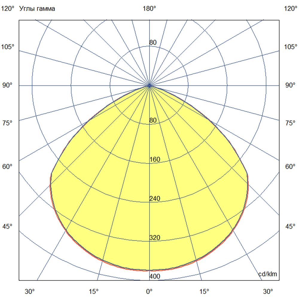- Кривая силы света: Косинусная (широкая) – равномерное распределение светового потока по всей площади согласно ГОСТ