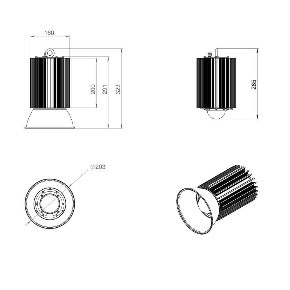 - Кривая силы света «Широкая» — равномерное распределение светового потока в пределах 120°, что соответствует российской классификации КСС для общего освещения производственных помещений