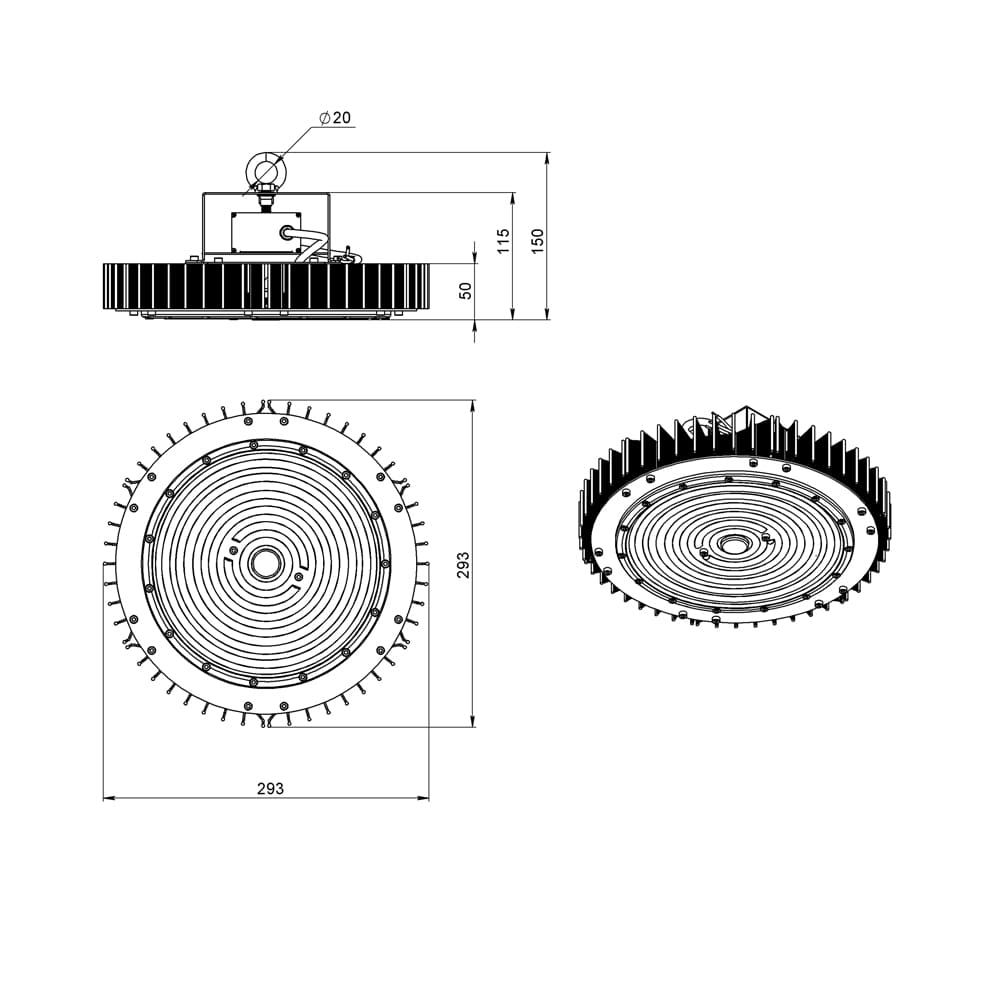 Кривая силы света (КСС) — глубокая. По российской классификации это Д1. Такая диаграмма направлена на максимальную концентрацию светового потока под светильником, что идеально подходит для освещения рабочих зон производственных цехов и складских помещений.