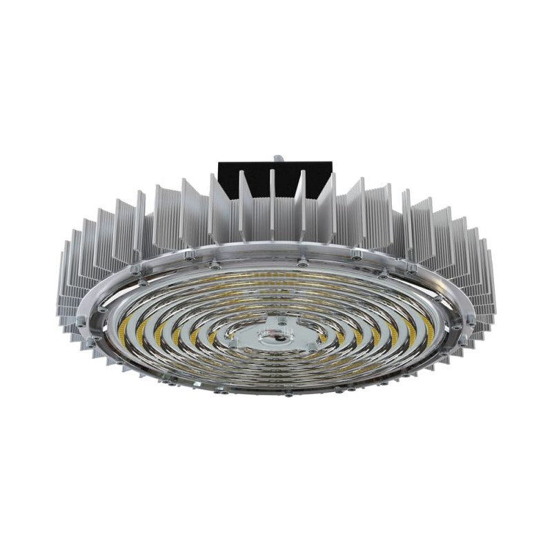 - Кривая силы света (КСС): глубокая — согласно российской классификации, обеспечивает максимальную концентрацию светового потока в нижнюю полусферу, что особенно эффективно для освещения производственных цехов с высокими потолками.
