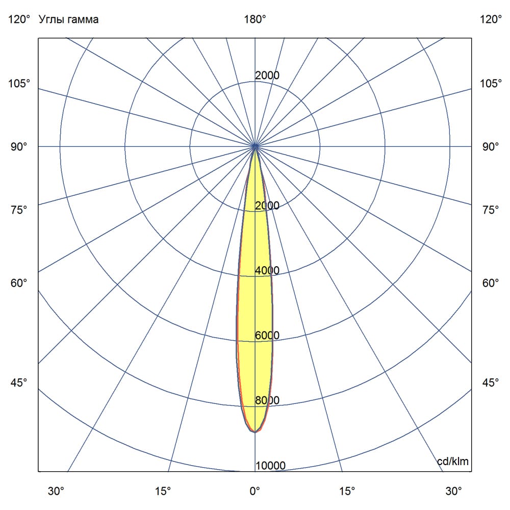 - Кривая силы света (КСС): глубокая — специальная форма диаграммы направленности обеспечивает максимальную концентрацию светового потока в нужном направлении