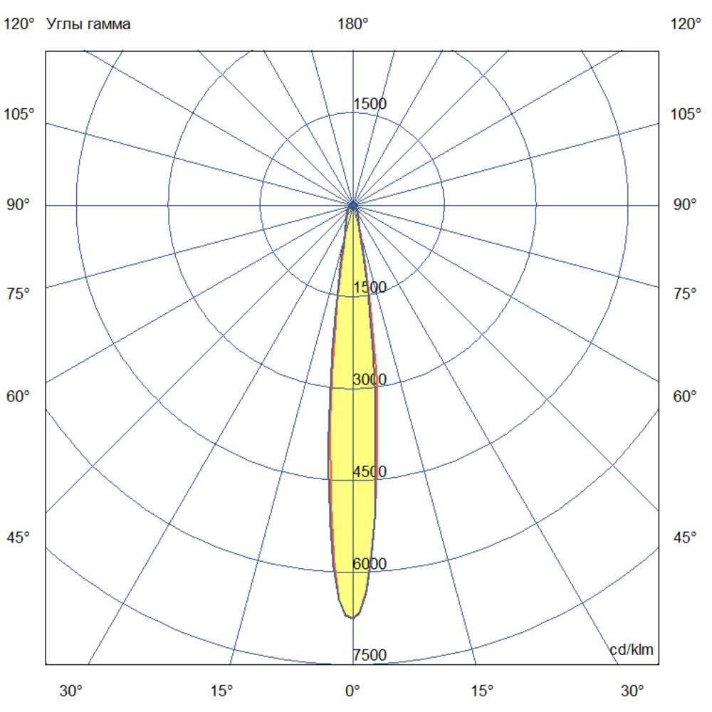 - Кривая силы света (КСС) — глубокая симметричная косинусная, соответствует российской классификации «Д» для точечного освещения высоких объектов
