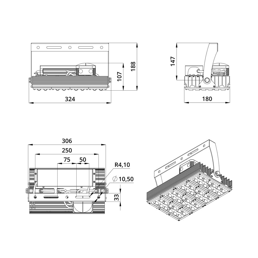 Класс пылевлагозащиты IP65 – надежная защита от пыли и струй воды делает светильник пригодным для любых погодных условий. Монтаж возможен как внутри помещений с повышенной влажностью, так и на открытых площадках.