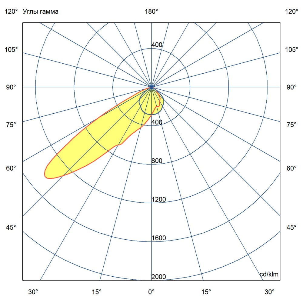 Кривая силы света (КСС): узкая эллипсоидная 130×30° – специальное распределение светового потока для направленного освещения вертикальных поверхностей или удаленных объектов. Такая диаграмма незаменима при освещении фасадов зданий, рекламных конструкций или производственных линий.