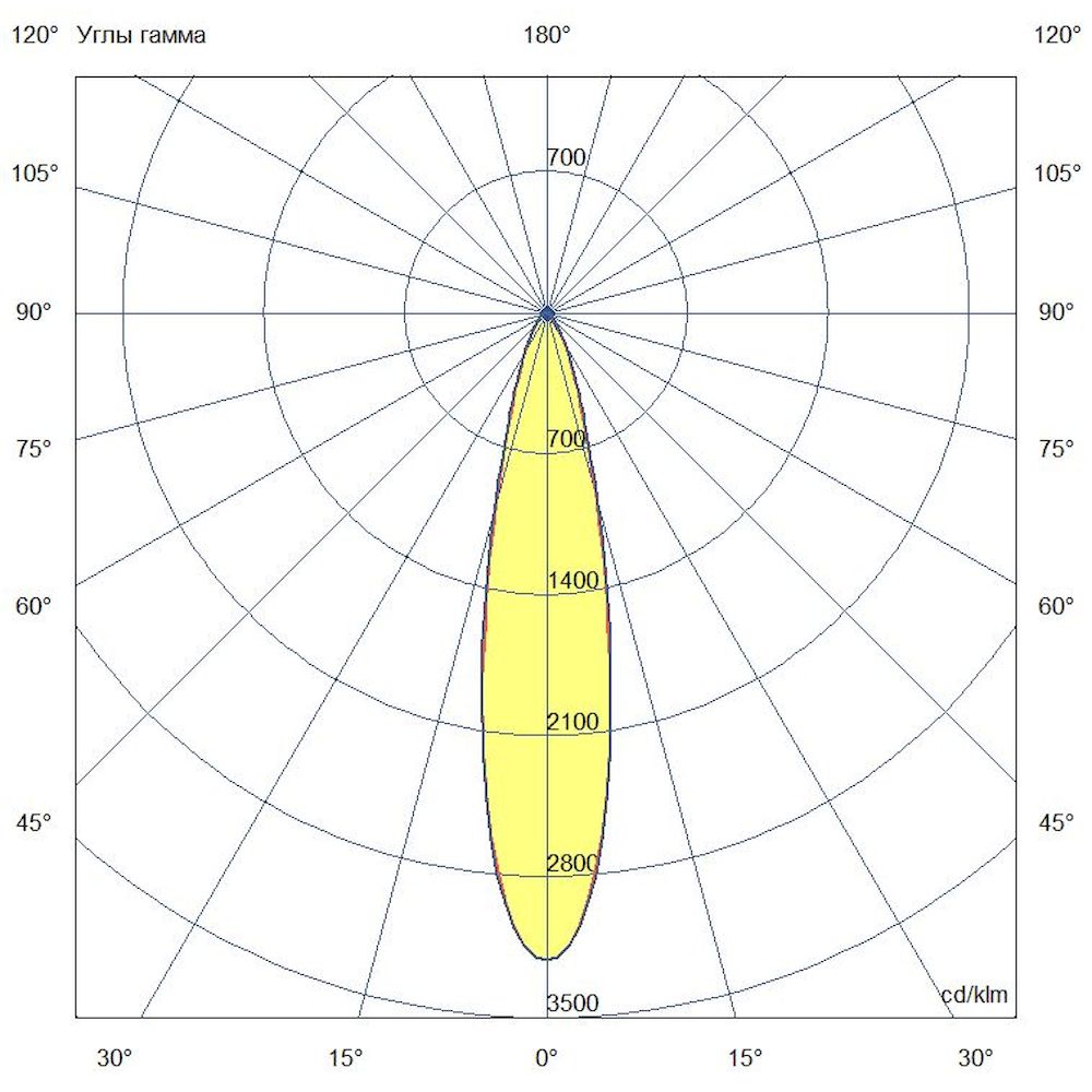 Кривая силы света (КСС): узконаправленная с углом 25° – создана для точечного освещения конкретных объектов или участков. По российской классификации относится к группе концентрированных КСС, что идеально подходит для архитектурной подсветки.