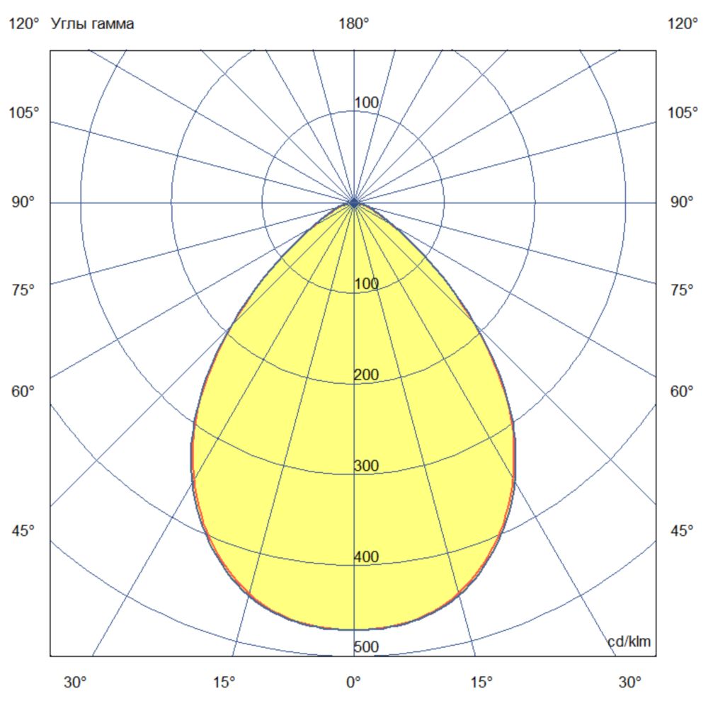 Кривая силы света (КСС) — широкая симметричная, что соответствует российской классификации «Д». Такая диаграмма идеально подходит для равномерного освещения больших площадей, обеспечивая оптимальное распределение светового потока под углом 80°.