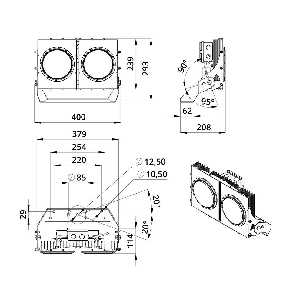 - Мощность: 200 Вт – оптимальный выбор для замены металлогалогенных светильников мощностью до 600 Вт. Это дает экономию электроэнергии более 65%.