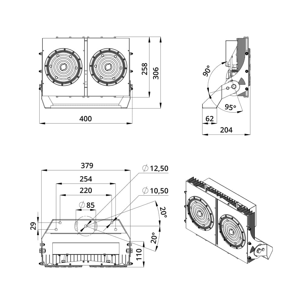 Светодиодный прожектор 300 D Экстра решает ключевую задачу современного бизнеса – обеспечение качественного освещения при контролируемом бюджете. Он идеально подходит как для модернизации действующих систем освещения, так и для новых проектов. Благодаря современным технологиям и продуманной конструкции, светильник обеспечивает равномерное освещение больших площадей без потери качества светового потока.