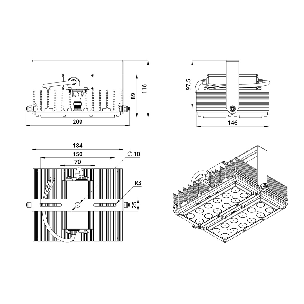 - Индекс цветопередачи CRI70 — гарантирует адекватное отображение цветов, что особенно важно при освещении торговых площадей или производственных помещений