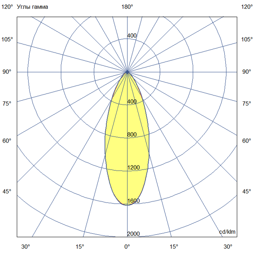 Кривая силы света (распределение светового потока в пространстве) соответствует российской классификации «Д» — глубокая. Это значит, световой поток направлен вниз под острым углом, что идеально подходит для освещения высоких объектов: фасадов зданий, промышленных цехов, складских помещений.