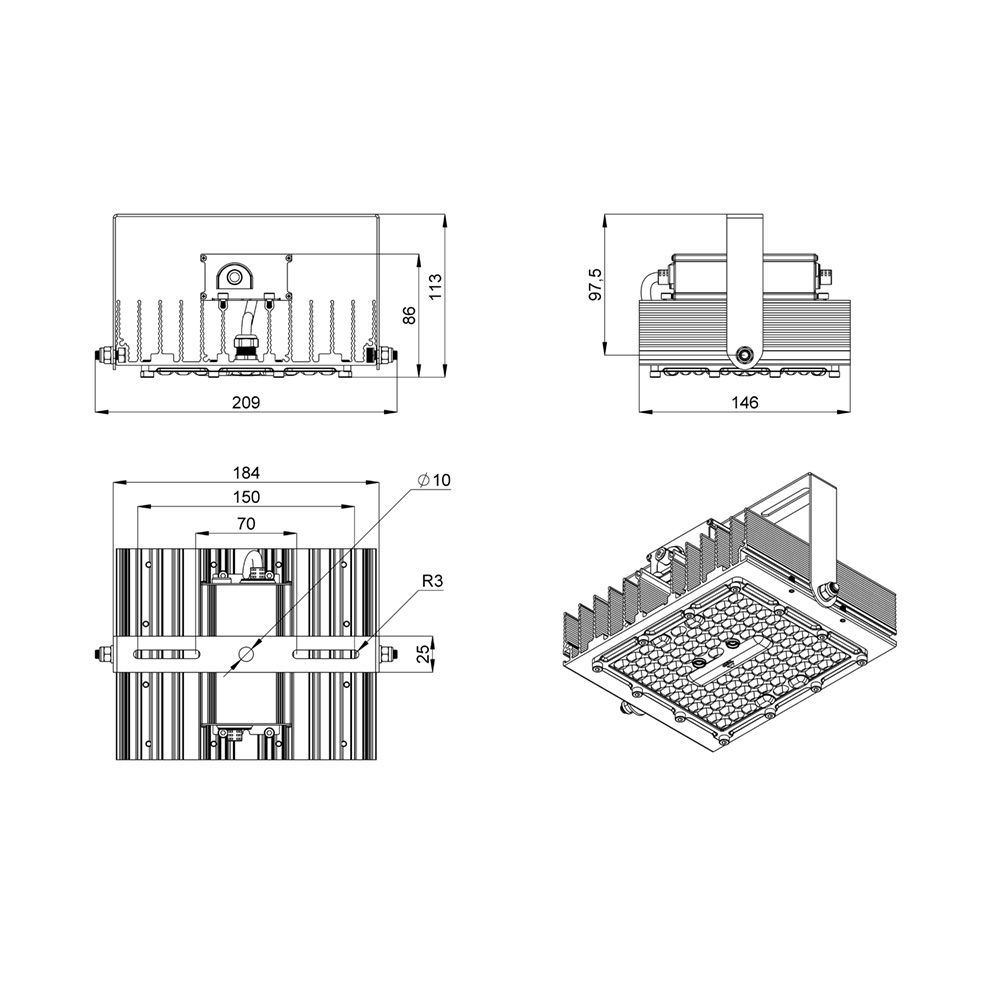 Экономическая выгода: Замена традиционных натриевых светильников на этот светодиодный прожектор позволяет снизить энергопотребление на 50-60%. При этом световой поток становится более качественным и равномерным.