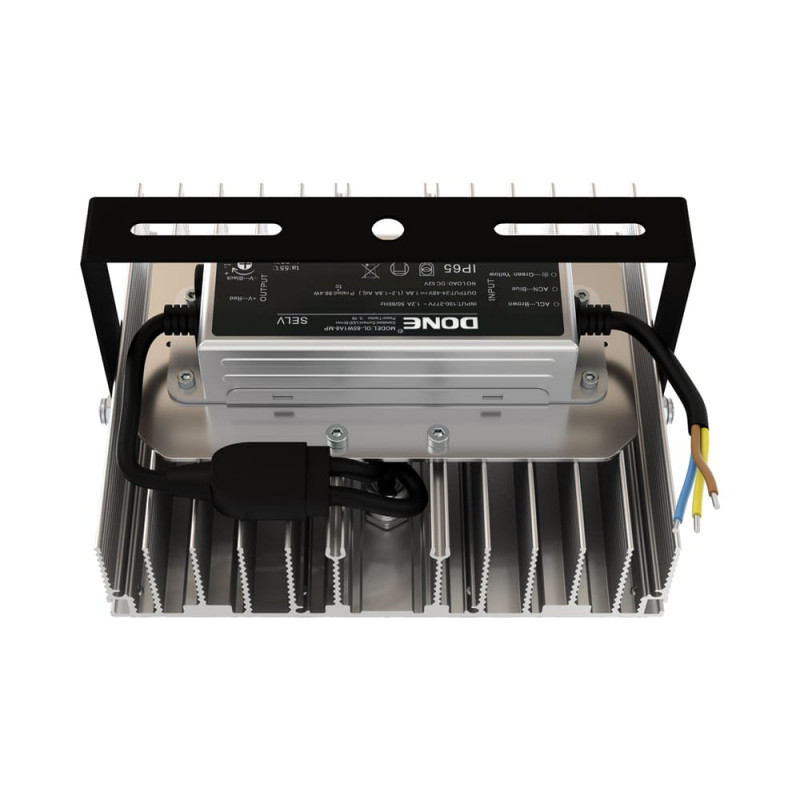 - Класс пылевлагозащиты: IP65 — полная защита от пыли и водяных струй, что делает прожектор пригодным для любых погодных условий