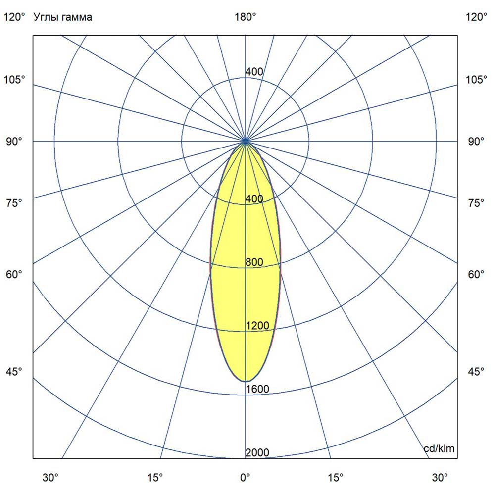 - Кривая силы света (КСС): глубокая – равномерное распределение светового потока по всей площади освещения, соответствует требованиям российской классификации