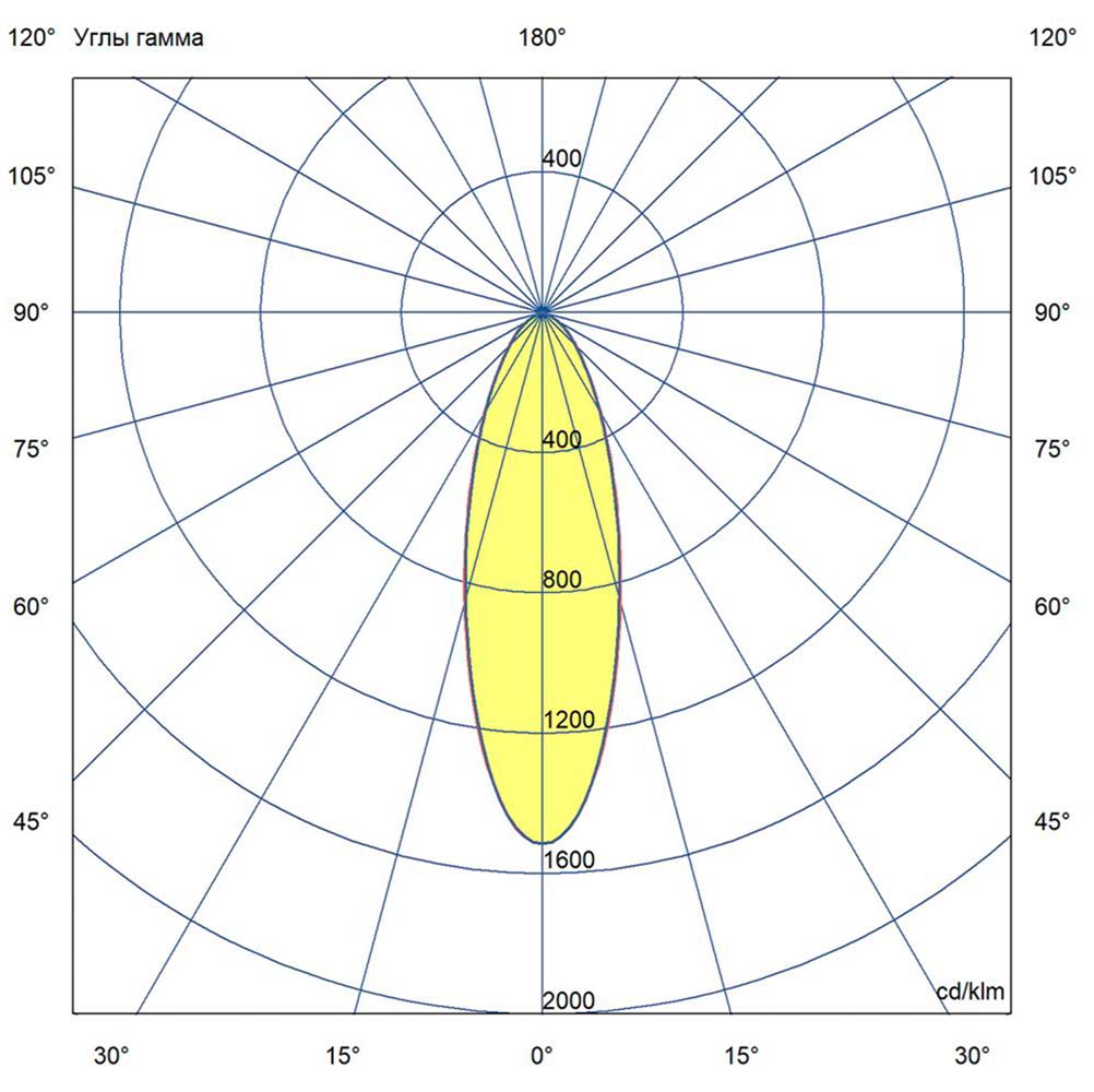 Кривая силы света (КСС) — глубокая или косинусная, предназначена для равномерного освещения рабочих поверхностей. По российской классификации соответствует КСС типа Д1, что делает светильник оптимальным выбором для освещения территорий с высотой подвеса 6-12 метров.