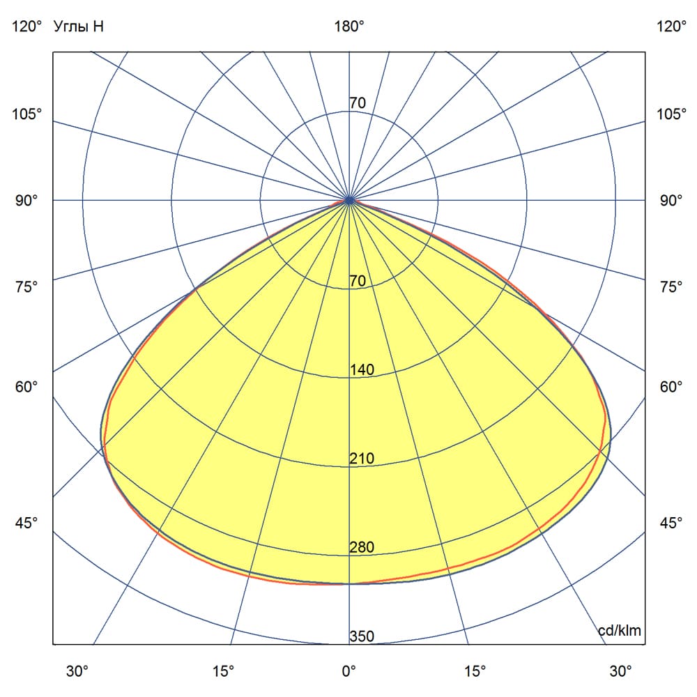 - Кривая силы света (КСС): Широкая — равномерное распределение светового потока по всей площади освещения, соответствует требованиям российских стандартов для открытых пространств