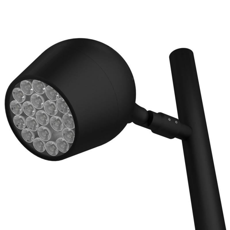 Светильник отличается компактной конструкцией и высокой эффективностью. Поворотный кронштейн обеспечивает точную настройку направления светового потока, что особенно важно при монтаже на сложных объектах. Угол рассеивания всего 5° создает четкий направленный луч, который можно точно позиционировать.