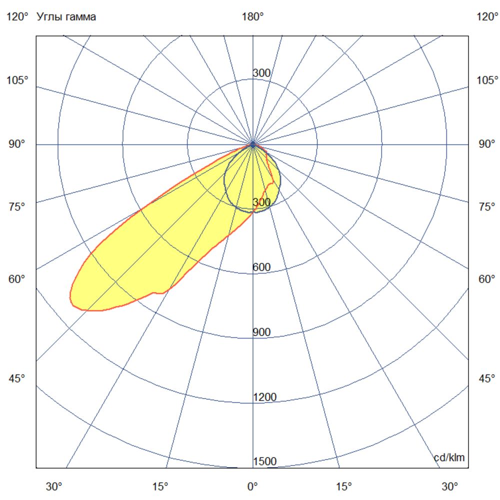 Кривая силы света (КСС) — глубокая КСС типа Г (по российской классификации) создает узконаправленный световой поток 95х35°. Такая диаграмма идеально подходит для точечного освещения высоких промышленных помещений, фасадов зданий и архитектурных элементов.