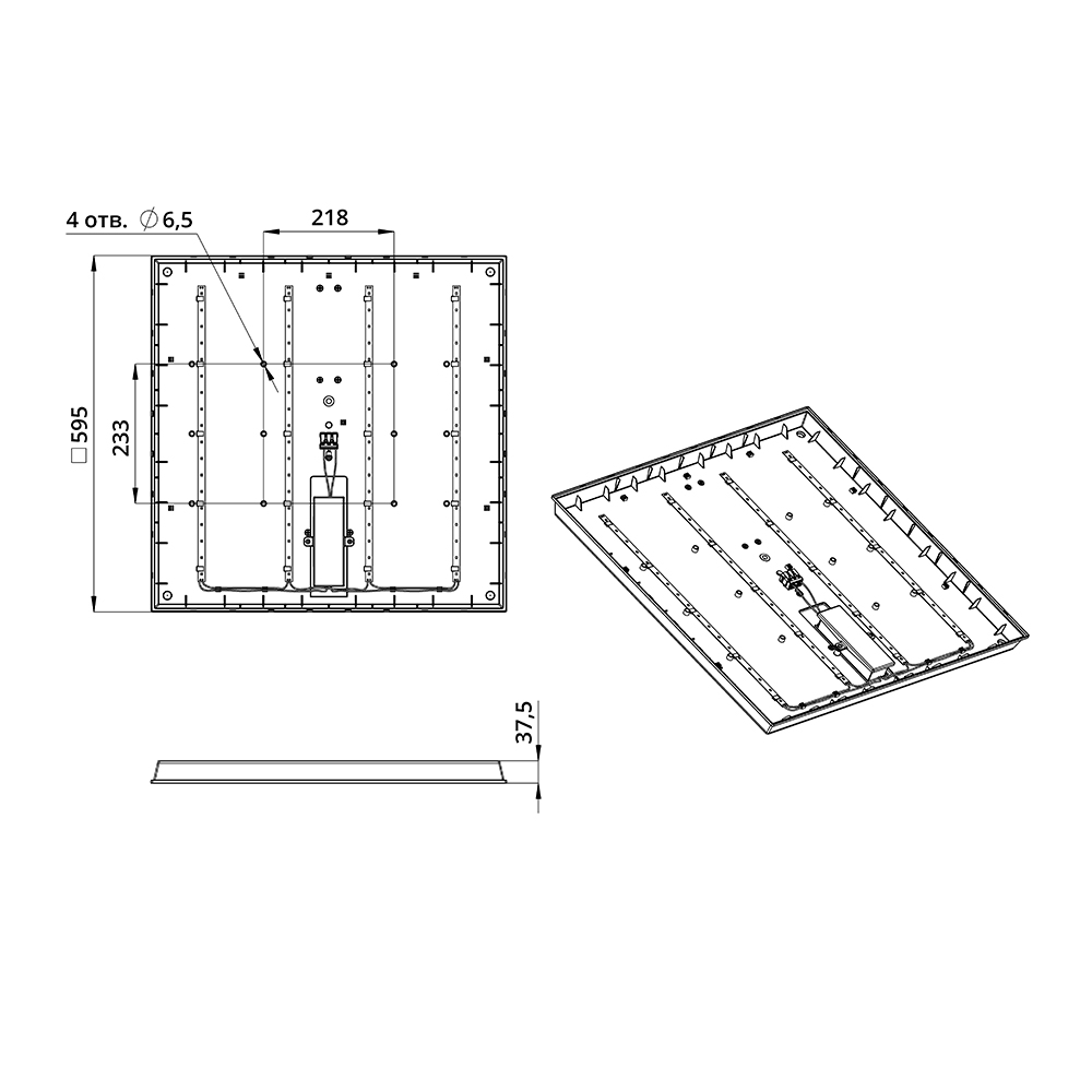 - Кривая силы света (КСС): Д — широкое распределение светового потока, оптимально для общего освещения административных и производственных помещений