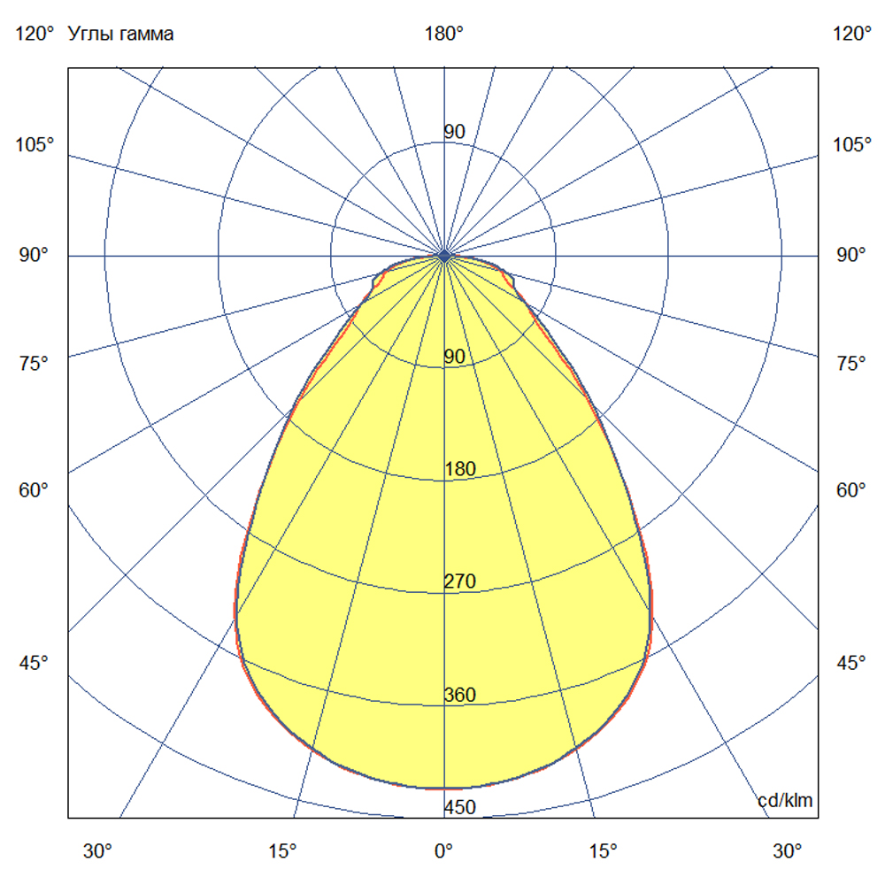 Благодаря инновационной микропризматической оптике светильник создает комфортное освещение без бликов. Кривая силы света (КСС) относится к категории «косинусная», что обеспечивает равномерное распределение светового потока вниз и вокруг светильника. Такая диаграмма направлена на создание комфортных условий для зрительной работы.