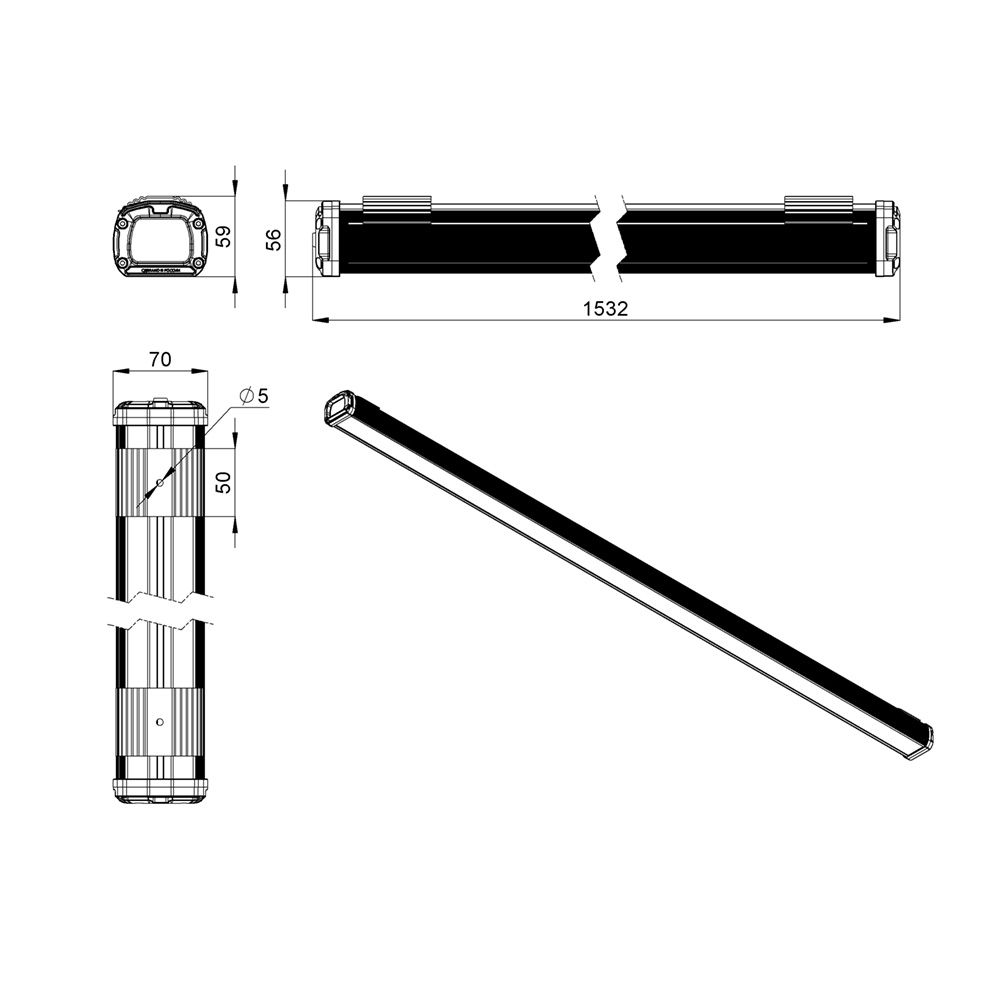 Светильник имеет компактные габариты 1500х60х40 мм и вес всего 1,2 кг, что значительно упрощает монтаж. Металлический корпус с полимерным покрытием обеспечивает длительный срок службы даже в сложных условиях. Универсальный крепеж позволяет быстро установить светильник на любую поверхность.