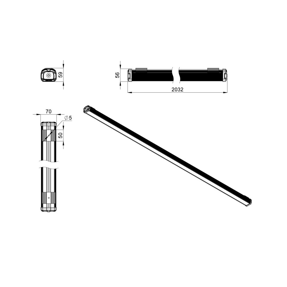 Светодиодный светильник Т-Линия Компакт 60 2000мм CRI70 5000К Прозрачный