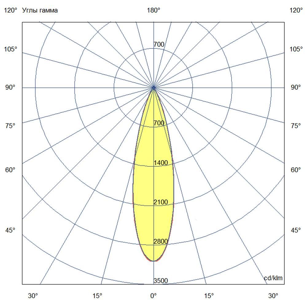 Кривая силы света (КСС): Косинусная, глубокая. Это означает, что световой поток распределяется в виде узкого луча с максимальной интенсивностью в центральной оси. Такая характеристика особенно ценна для освещения высоких пространств, где важно сфокусировать свет на рабочей поверхности.